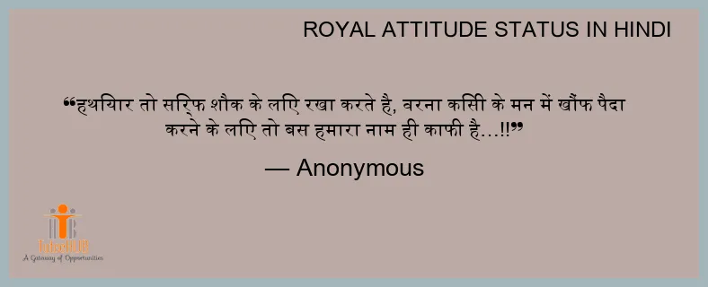 हथियार तो सिर्फ शौक के लिए रखा करते है, वरना किसी के मन में खौंफ पैदा करने के लिए तो बस हमारा नाम ही काफी है…!!