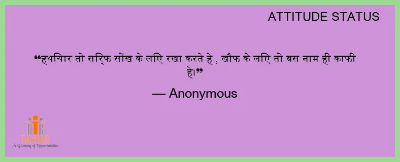 हथियार तो सिर्फ सोंख के लिए रखा करते हे , खौफ के लिए तो बस नाम ही काफी हे।