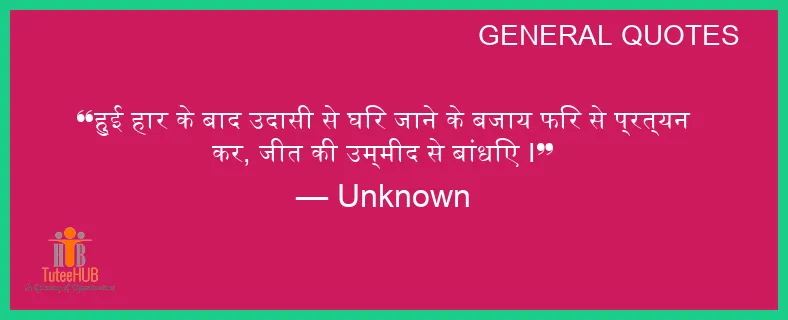हुई हार के बाद उदासी से घिर जाने के बजाय फिर से प्रत्यन कर, जीत की उम्मीद से बांधिए I