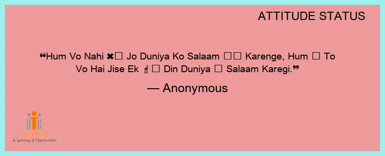 Hum Vo Nahi ✖️ Jo Duniya Ko Salaam 🖐️ Karenge, Hum 👦 To Vo Hai Jise Ek ☝️ Din Duniya 🌍 Salaam Karegi.