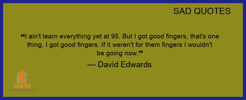 I ain't learn everything yet at 95. But I GOT GOOD fingers, that's one thing, I got good fingers. If it weren't for them fingers I wouldn't be going now.