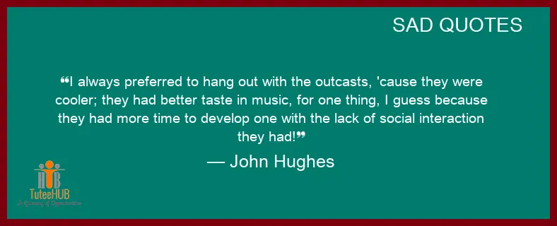I always preferred to hang out with the outcasts, 'cause they were cooler; they had better taste in music, for one THING, I guess because they had more time to DEVELOP one with the lack of SOCIAL interaction they had!