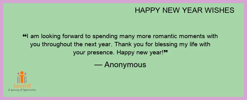I am looking forward to spending many more romantic moments with you throughout the next year. Thank you for blessing my life with your presence. Happy new year!