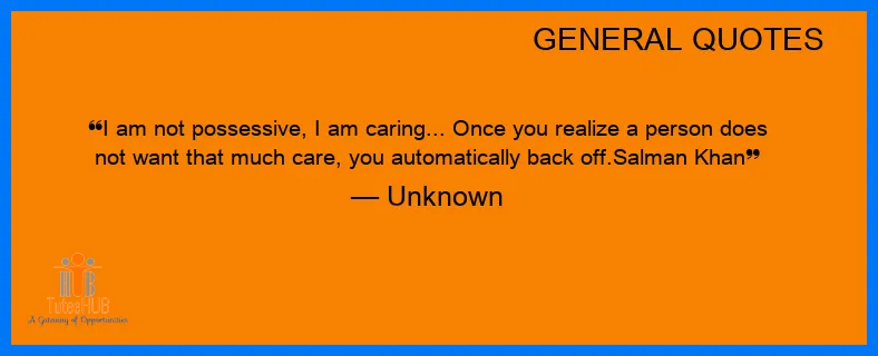 I am not possessive, I am CARING... Once you realize a person does not WANT that much CARE, you AUTOMATICALLY back off.Salman Khan