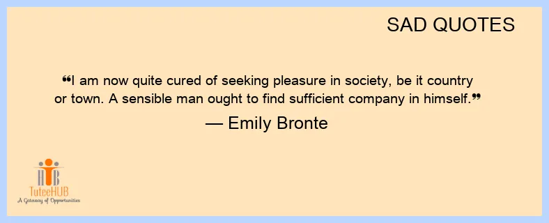 I am now quite CURED of SEEKING pleasure in society, be it country or town. A sensible man OUGHT to find SUFFICIENT COMPANY in himself.