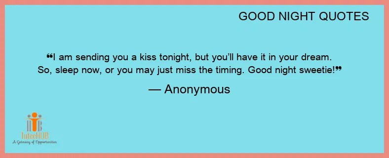 I am sending you a kiss tonight, but you’ll have it in your dream. So, sleep now, or you may just miss the timing. Good night sweetie!