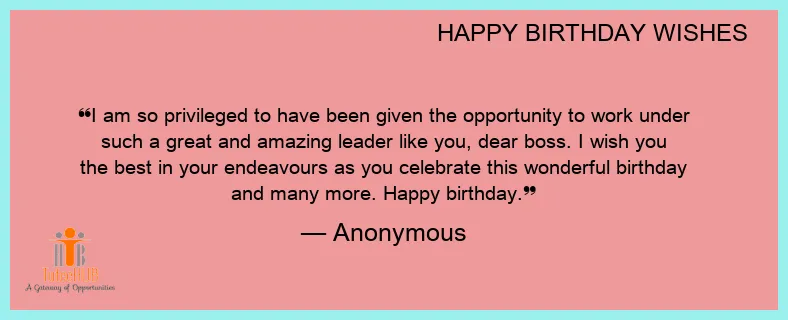 I am so privileged to have been given the opportunity to work under such a great and amazing leader like you, dear boss. I wish you the best in your endeavours as you celebrate this wonderful birthday and many more. Happy birthday.