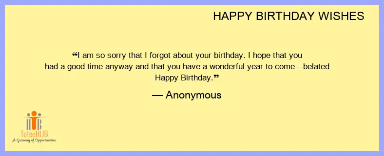 I am so sorry that I forgot about your birthday. I hope that you had a good time anyway and that you have a wonderful year to come—belated Happy Birthday.