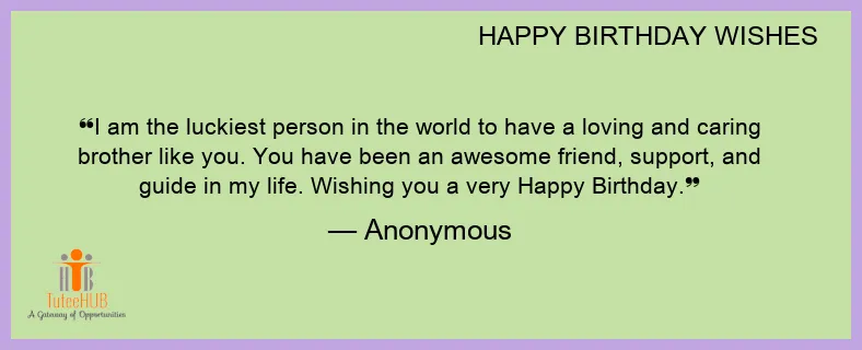 I am the luckiest person in the world to have a loving and caring brother like you. You have been an awesome friend, support, and guide in my life. Wishing you a very Happy Birthday.