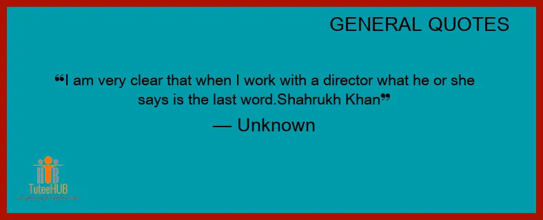 I am very CLEAR that when I WORK with a DIRECTOR what he or she SAYS is the LAST word.Shahrukh Khan