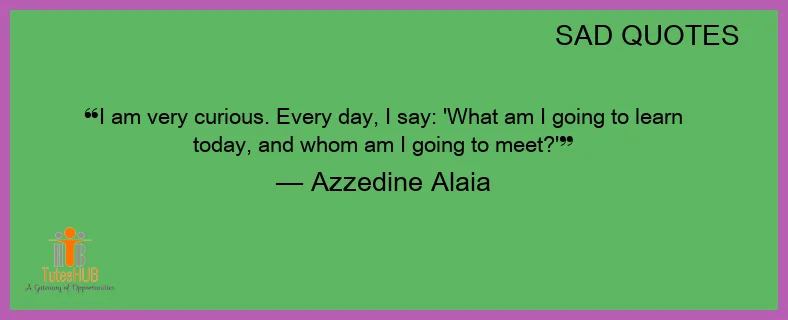 I am very CURIOUS. Every day, I say: 'What am I GOING to LEARN today, and whom am I going to meet?'