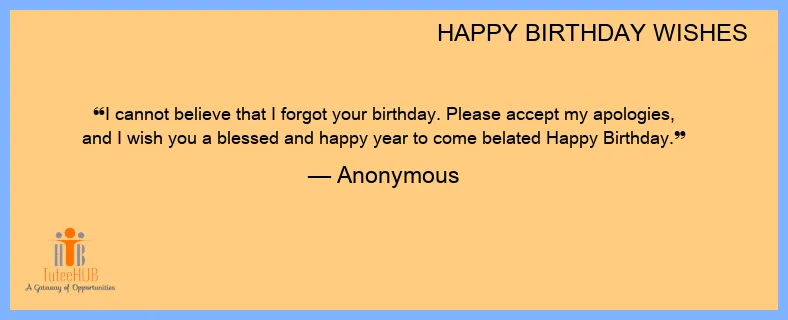 I cannot believe that I forgot your birthday. Please accept my apologies, and I wish you a blessed and happy year to come belated Happy Birthday.