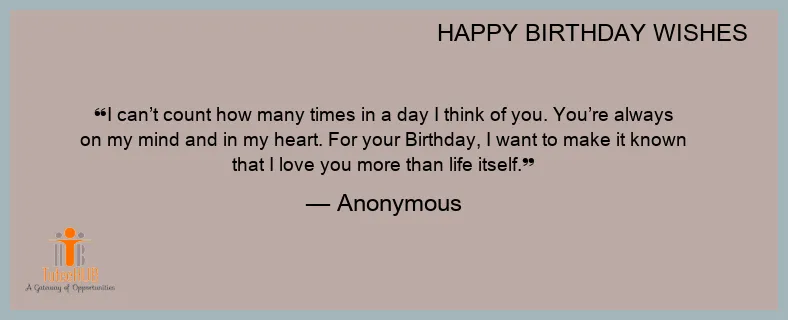 I can’t count how many times in a day I think of you. You’re always on my mind and in my heart. For your Birthday, I want to make it known that I love you more than life itself.