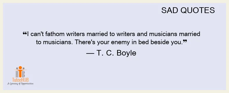 I can't fathom WRITERS MARRIED to writers and MUSICIANS married to musicians. There's your ENEMY in BED beside you.
