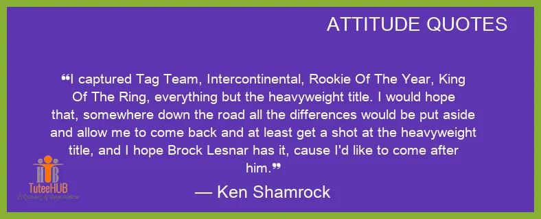 I captured Tag Team, Intercontinental, ROOKIE Of The Year, King Of The RING, everything but the heavyweight title. I would hope that, somewhere down the road all the DIFFERENCES would be put aside and ALLOW me to come back and at least get a shot at the heavyweight title, and I hope Brock Lesnar has it, cause I'd LIKE to come after him.