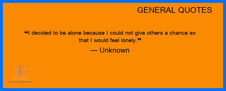 I decided to be ALONE because I could not give others a chance so that I WOULD FEEL LONELY.