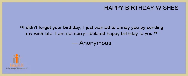 I didn’t forget your birthday; I just wanted to annoy you by sending my wish late. I am not sorry—belated happy birthday to you.