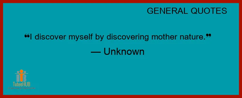 I DISCOVER myself by discovering MOTHER NATURE.