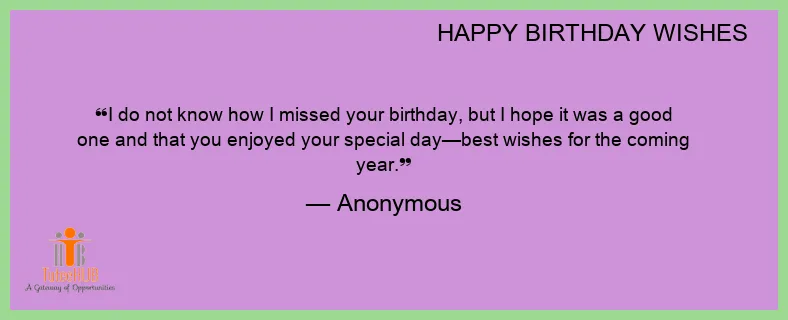 I do not know how I missed your birthday, but I hope it was a good one and that you enjoyed your special day—best wishes for the coming year.