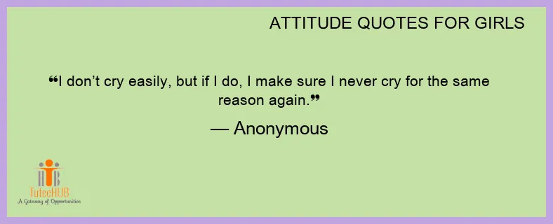 I don’t cry easily, but if I do, I make sure I never cry for the same reason again.