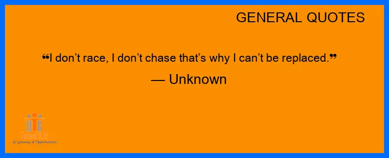 I don’t RACE, I don’t CHASE that’s why I can’t be replaced.