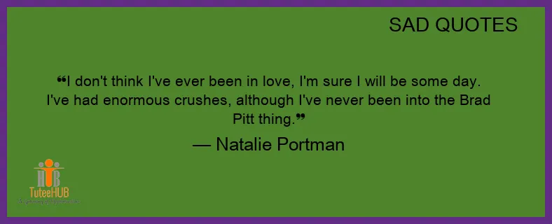 I don't THINK I've EVER been in love, I'm sure I will be some DAY. I've had enormous crushes, although I've never been into the Brad Pitt THING.
