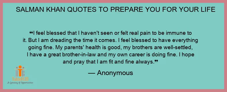 I feel blessed that I haven't seen or felt real pain to be immune to it. But I am dreading the time it comes. I feel blessed to have everything going fine. My parents' health is good, my brothers are well-settled, I have a great brother-in-law and my own career is doing fine. I hope and pray that I am fit and fine always.