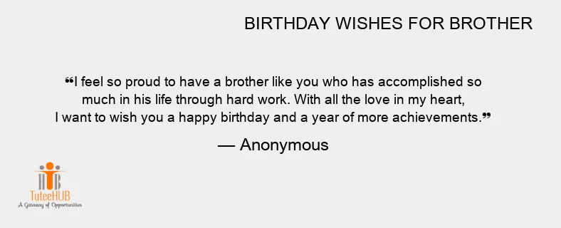 I feel so proud to have a brother like you who has accomplished so much in his life through hard work. With all the love in my heart, I want to wish you a happy birthday and a year of more achievements.