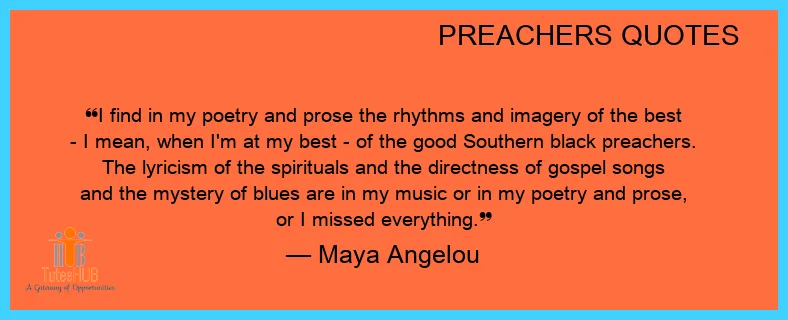 I find in my poetry and prose the rhythms and imagery of the best - I MEAN, when I'm at my best - of the good Southern black preachers. The lyricism of the spirituals and the directness of gospel songs and the mystery of BLUES are in my MUSIC or in my poetry and prose, or I missed everything.