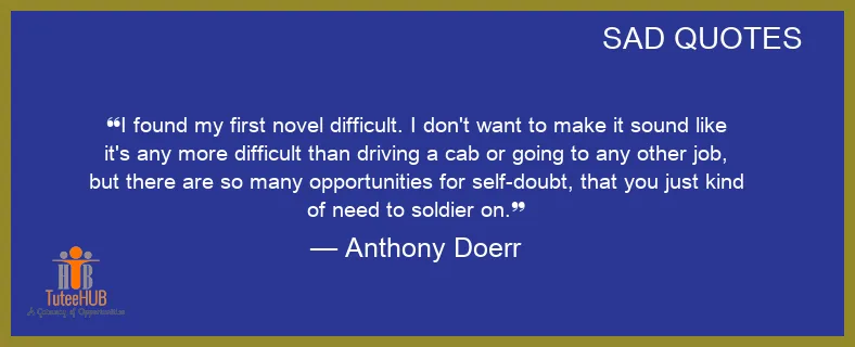 I found my first novel difficult. I don't WANT to make it sound LIKE it's any more difficult than driving a cab or going to any other JOB, but there are so many opportunities for self-doubt, that you just kind of NEED to soldier on.