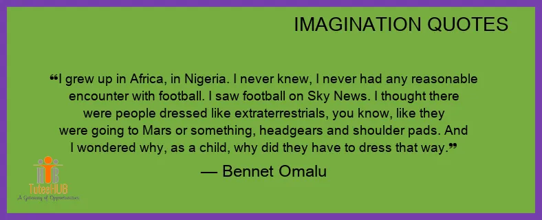 I grew up in Africa, in NIGERIA. I never knew, I never had any reasonable encounter with football. I SAW football on Sky News. I thought there were people dressed like extraterrestrials, you know, like they were going to Mars or something, headgears and SHOULDER pads. And I wondered why, as a child, why did they have to DRESS that WAY.