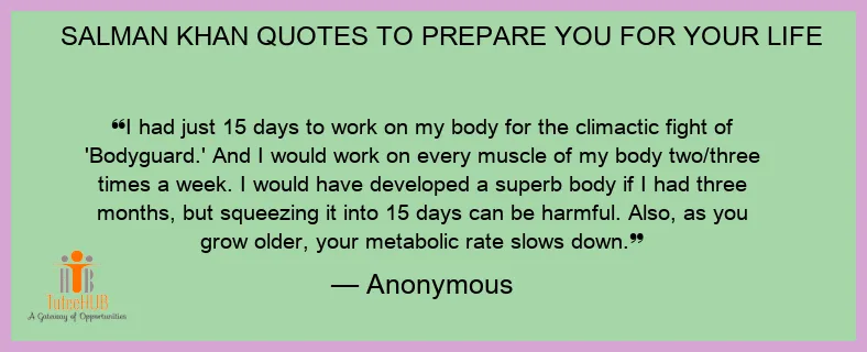 I had just 15 days to work on my body for the climactic fight of 'Bodyguard.' And I would work on every muscle of my body two/three times a week. I would have developed a superb body if I had three months, but squeezing it into 15 days can be harmful. Also, as you grow older, your metabolic rate slows down.