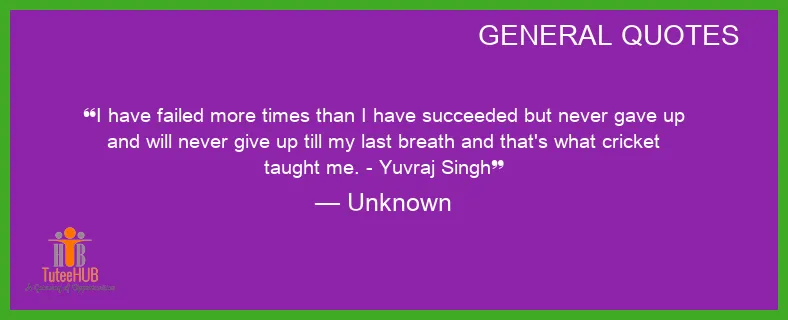 I have failed more times than I have succeeded but never gave up and will never GIVE up TILL my LAST breath and that's what cricket TAUGHT me. - Yuvraj Singh