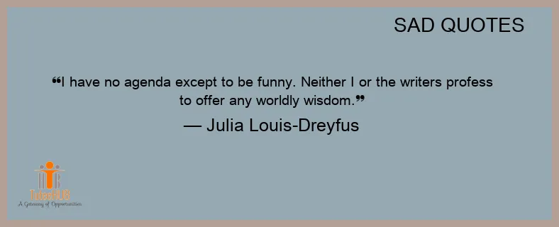 I have no agenda except to be funny. NEITHER I or the WRITERS profess to OFFER any worldly WISDOM.