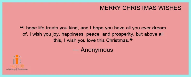 I hope life treats you kind, and I hope you have all you ever dream of, I wish you joy, happiness, peace, and prosperity, but above all this, I wish you love this Christmas.
