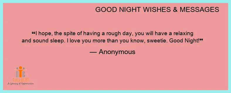 I hope, the spite of having a rough day, you will have a relaxing and sound sleep. I love you more than you know, sweetie. Good Night!
