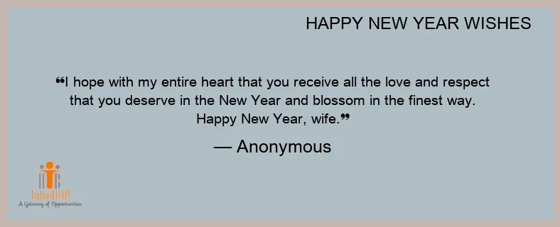 I hope with my entire heart that you receive all the love and respect that you deserve in the New Year and blossom in the finest way. Happy New Year, wife.