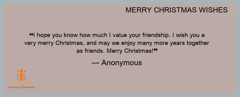 I hope you know how much I value your friendship. I wish you a very merry Christmas, and may we enjoy many more years together as friends. Merry Christmas!