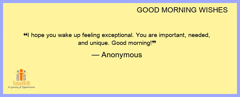 I hope you wake up feeling exceptional. You are important, needed, and unique. Good morning!