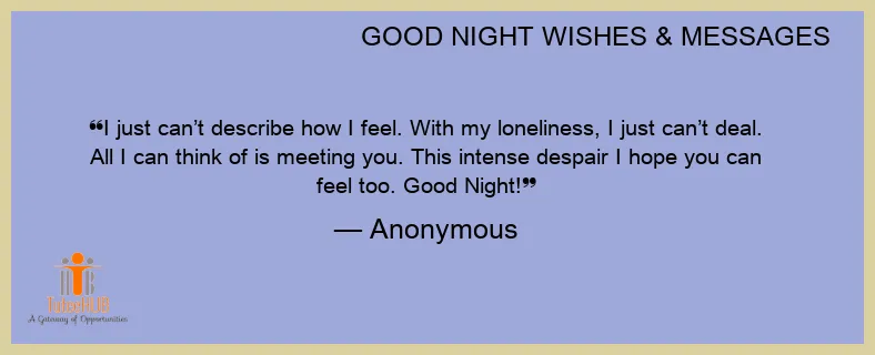 I just can’t describe how I feel. With my loneliness, I just can’t deal. All I can think of is meeting you. This intense despair I hope you can feel too. Good Night!
