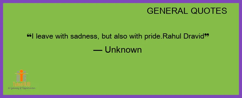 I LEAVE with SADNESS, but ALSO with pride.Rahul Dravid