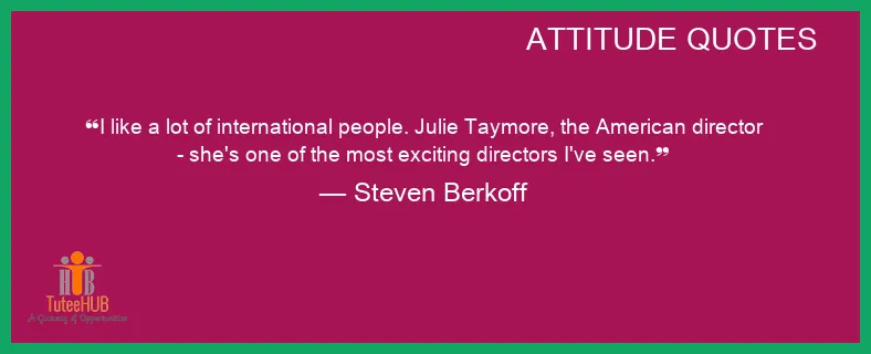 I LIKE a lot of INTERNATIONAL people. Julie Taymore, the American DIRECTOR - she's one of the most EXCITING DIRECTORS I've seen.