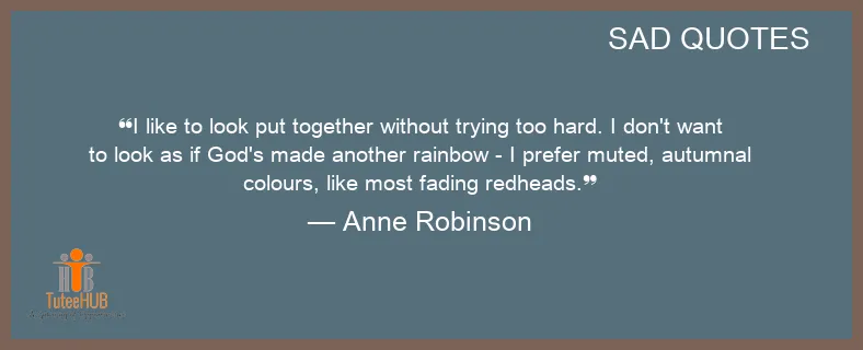 I like to LOOK put TOGETHER without trying too HARD. I don't want to look as if GOD's MADE another rainbow - I prefer muted, autumnal colours, like most fading redheads.