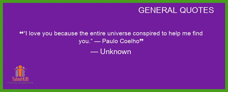 “I love you because the ENTIRE universe conspired to help me find you.” — Paulo Coelho