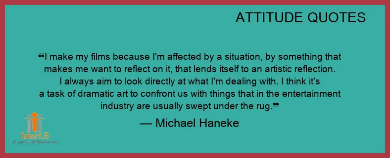 I make my films because I'm AFFECTED by a SITUATION, by something that makes me want to reflect on it, that lends itself to an artistic REFLECTION. I always aim to look DIRECTLY at what I'm DEALING with. I think it's a task of dramatic art to confront us with things that in the entertainment industry are usually swept under the rug.