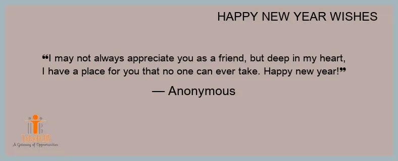 I may not always appreciate you as a friend, but deep in my heart, I have a place for you that no one can ever take. Happy new year!