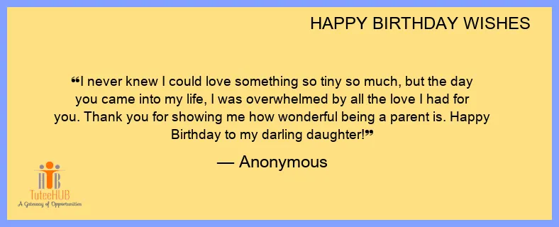I never knew I could love something so tiny so much, but the day you came into my life, I was overwhelmed by all the love I had for you. Thank you for showing me how wonderful being a parent is. Happy Birthday to my darling daughter!