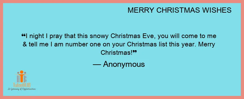 I night I pray that this snowy Christmas Eve, you will come to me & tell me I am number one on your Christmas list this year. Merry Christmas!