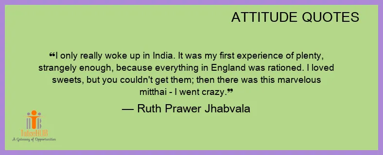 I only really woke up in INDIA. It was my first experience of plenty, strangely ENOUGH, because EVERYTHING in England was rationed. I loved sweets, but you couldn't get them; then there was this marvelous mitthai - I went CRAZY.