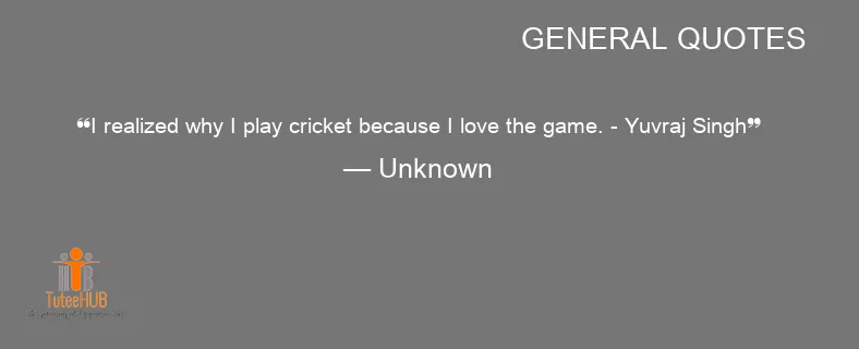 I REALIZED why I PLAY CRICKET because I LOVE the GAME. - Yuvraj Singh